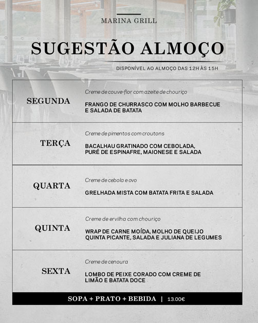 Menu Quinta dos Açores - Marina Grill